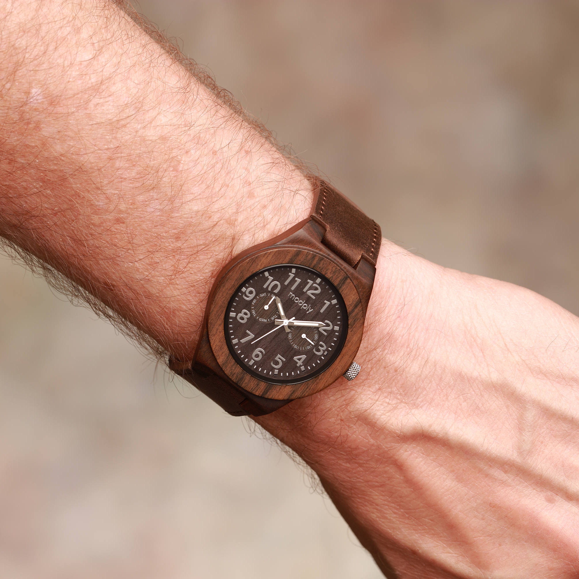 A wood and leather watch makes a fantastic gift for a special occasion, so feel free to customize yours with an engraving.